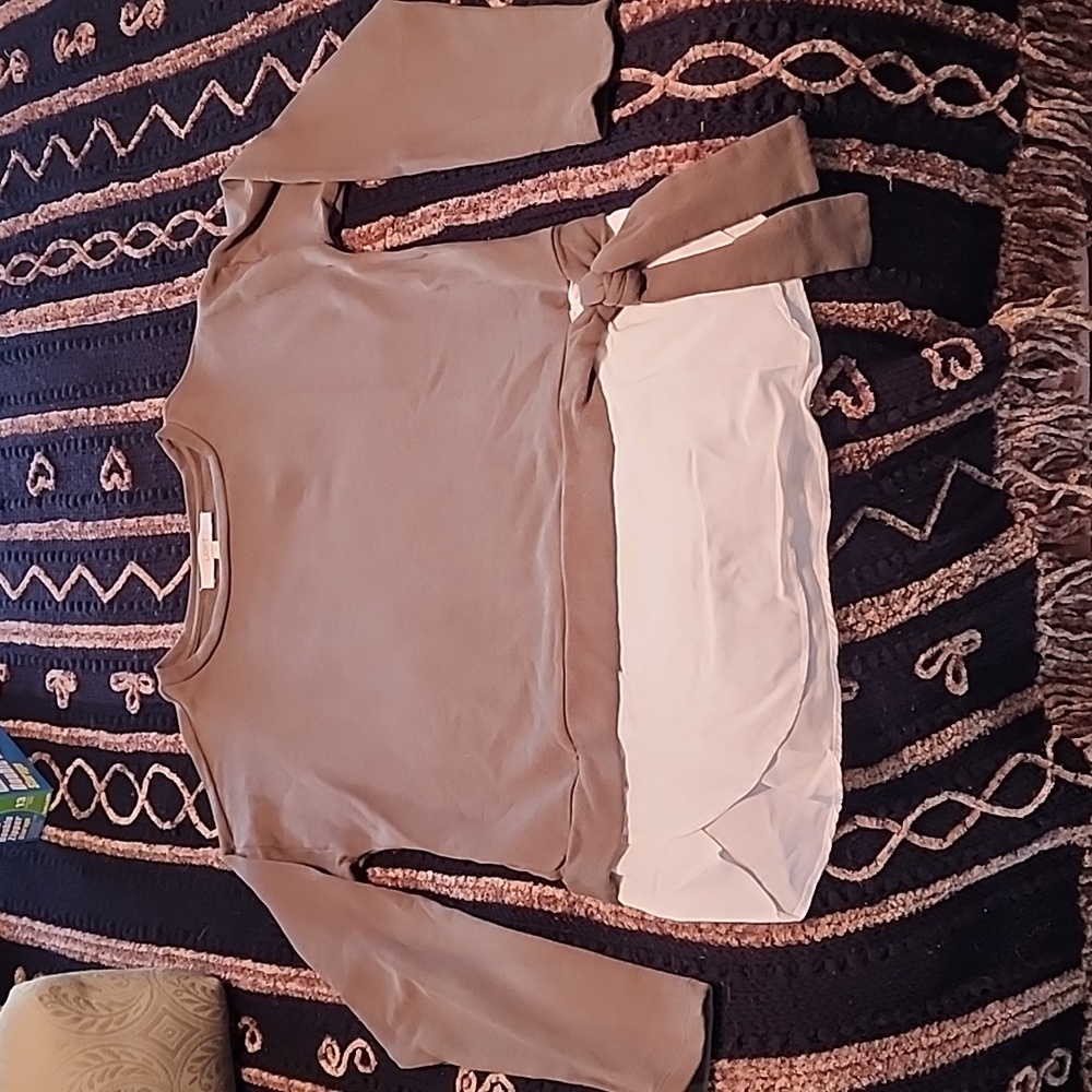 beautiful, excellent condition. measurements and labels in photos. army olive green and white with side tie.