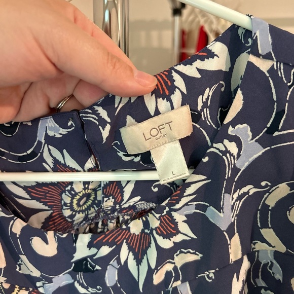 Background is more purple than blue. I get compliments every time I wear this. Decluttering for new items! Sz lg. in great condition.