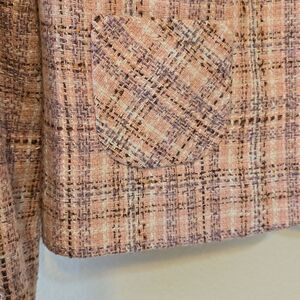 classic tweed jacket with front pockets and button closure in great pre-owned condition. please refer to photos for more details and measurements. smoke-free home. Questions? Leave a comment below!