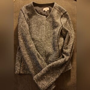 Loft black/gray tweed jacket with 2 button closure, 2 pockets on the front, size 0