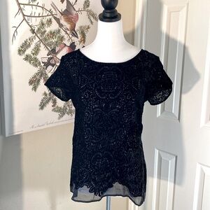 Loft velvet laser cut-Out, short sleeve black blouse, size small