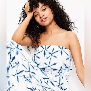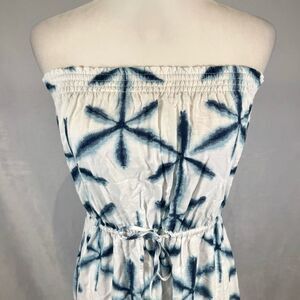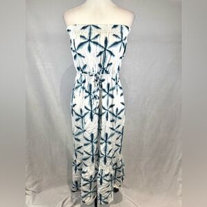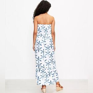 Loft white and blue starburst tie dye strapless maxi dress size medium petite