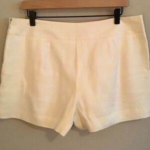 Loft 4” inseam white linen shorts, 60% linen, 39% cotton, 1% spandex