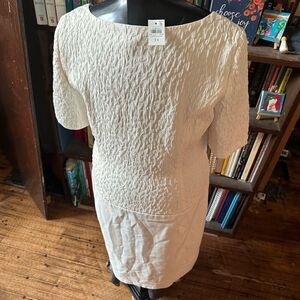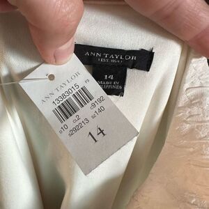Loft business casual, romantic, square neck, front zipper, lace bodice dress. Brand new, though there is a mark on the lining and the shoulder pads are missing. Approximately 20 inches from armpit to armpit, 20.5 inches across the waist, and 38 inches long. From a pet and smoke free house.