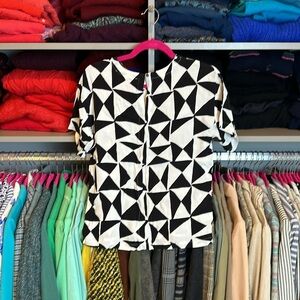 Loft white/black short sleeve back keyhole button closure crew neck top size XS​
