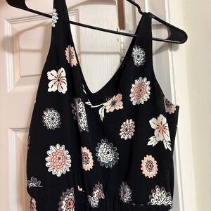 This is such a cute jumpsuit. I love the floral print on it, and it was perfect for a family photoshoot at the lake. It pulls on and has a cinched stretchy waist. Front and back pockets and wide legs. It’s a nice material that is perfect for summer. It’s a v neck tank in the front and back, but not to low cut that you need a special type of bra. It’s lightly worn and in great condition with no known flaws. I love this jumpsuit and I’m sad to part with it, but I can’t fit it anymore.