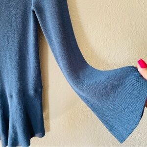 Loft woman's blue long sleeve knit top size S flared feminine hem stretchy