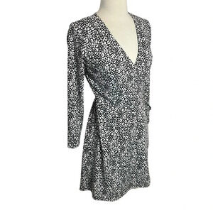 Loft 2P black + white leopard print wrap dress