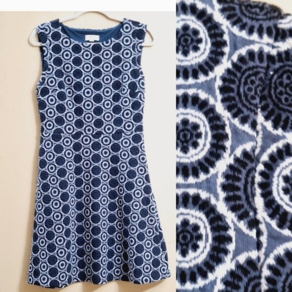 Loft womens Blue white geometric Print Midi Dress Sleeveless Sz 4 Fit flare
