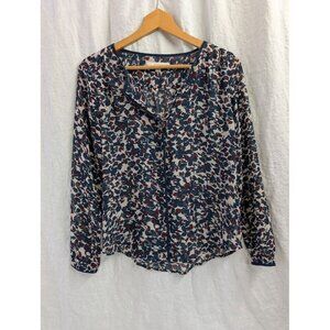 Loft women's extra small floral sheer blouse long sleeve navy & burgundy O2
