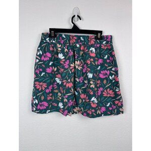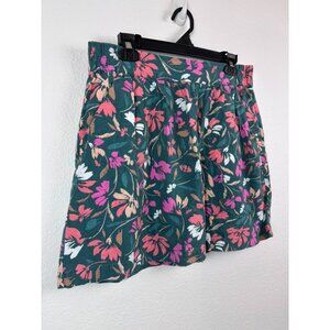 Loft brand women's size medium green floral mini skirt. In excellent pre-owned condition. Lightweight linen viscose blend. Elastic pull on waistband. Has hip pockets.