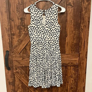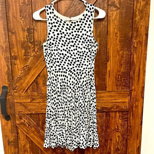Loft women’s white and black polka dot sleeveless midi dress size xsmall petite EUC