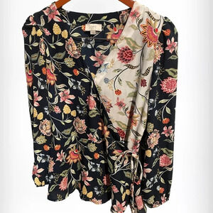Loft women’s wrap multi color floral blouse boho long sleeve size Small