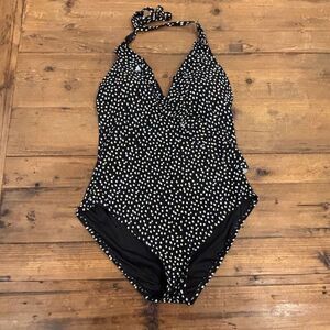 Loft Beach One Piece Swimsuit Black White Ruffled V-Neck Size M
