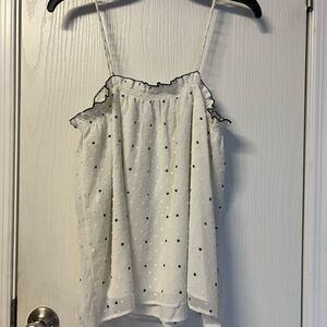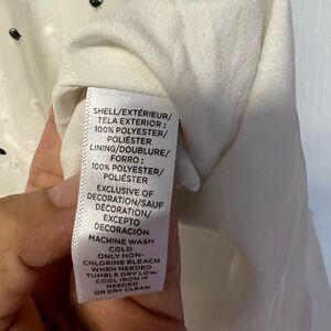 This blouse has beautiful textured polka dots and is fully lined with an elastic top .