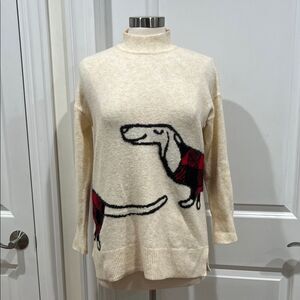 Loft Dachshund Dog Buffalo Plaid Sweater Size Medium Petite MP