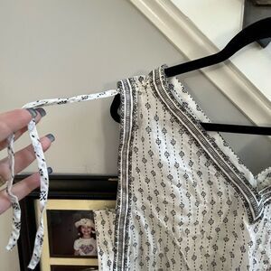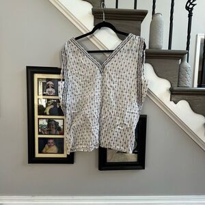 Loft Double V Boho Shoulder Tie Top Blouse sz L