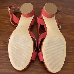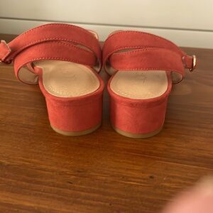 Like new, rust/orange colored sandals with 1” chunky round heel. Perfect for fall!