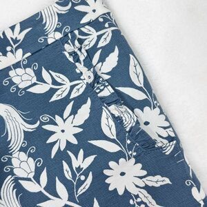 Loft Floral Peacock Bird Ruffle Pocket Riviera Chino Shorts Blue White Size 4
