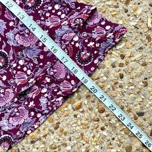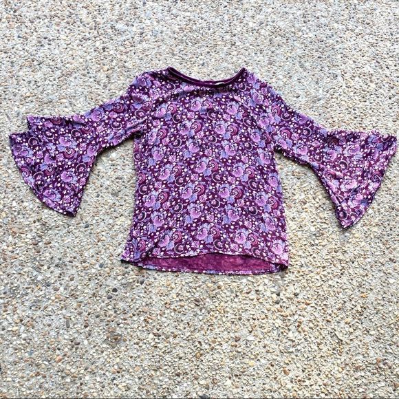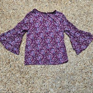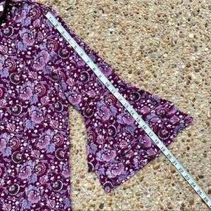 Loft Floral Bell Sleeved Wine-Colored Blouse Size M