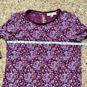 Loft floral double layered bell sleeve shirt with a keyhole button closure in the back.