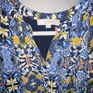 Loft blue floral swing dress with 3/4 sleeve, Sz XSP. Like new!