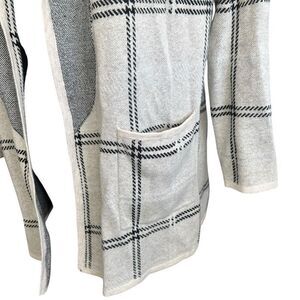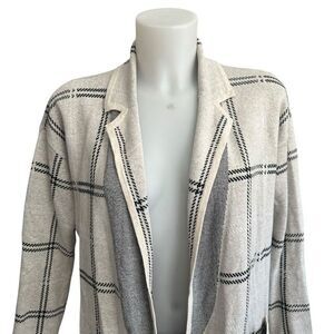 Loft Gray Cream Check Print open front Collared Knit Cardigan Sweater sz XS