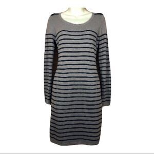 Loft | Gray Stripe Long Sleeve Sweater Dress | S