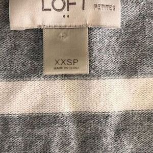 Super soft gray and white striped Loft sweater. Tag says xxsp but fits like XS/S
