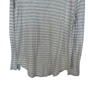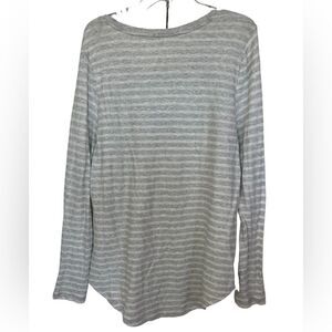 Loft Gray/White Striped Long Sleeve Scoop Neck Rounded Hem T-Shirt XL