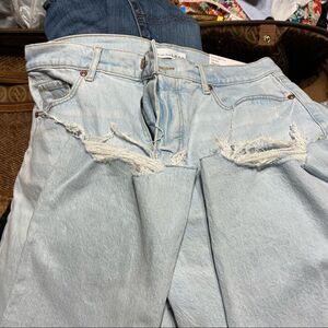 nwt Destructed Chewed Hem High Rise Straight Crop Jeans in Staple Light Indigo Wash