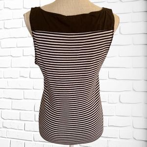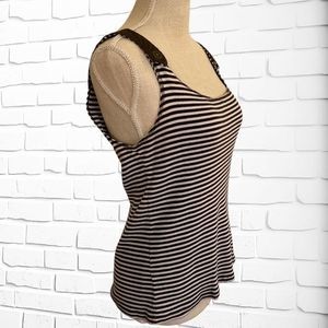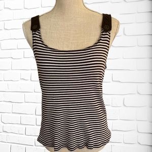 Loft, Large, Brown/White Striped Tank w/ Button Shoulder Embellishments