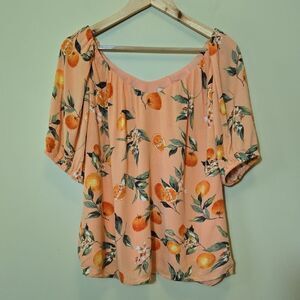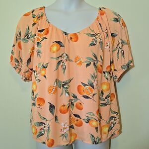 Loft Orange Harvest Sweetheart Neck Blouse Size Small Oversized Fruit Print 2023