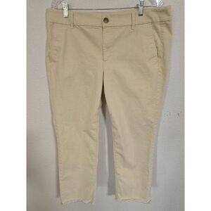 Loft Outlet Womens Girlfriend Chino Cropped Khaki Pants Sz 14 Frayed Raw hem on bottom of pants. In good pre-owned condition see pictures above.