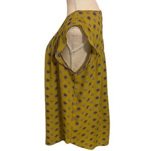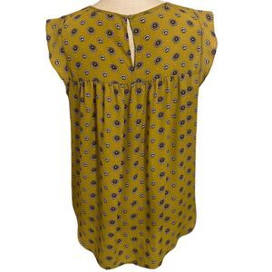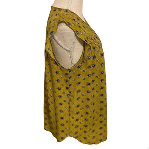Cute Loft Outlet Flutter Sleeve Top in line green with sweet little flower like design. Colors are gorgeous avocado, burgundy, blue and tan compliment one another. Key hole back with small button. Great used condition with no rips, tears or stains. Machine washable; 100% polyester. Size medium.