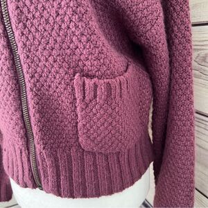 Loft Purple Chunky Knit Full Zip Mock Neck Sweater