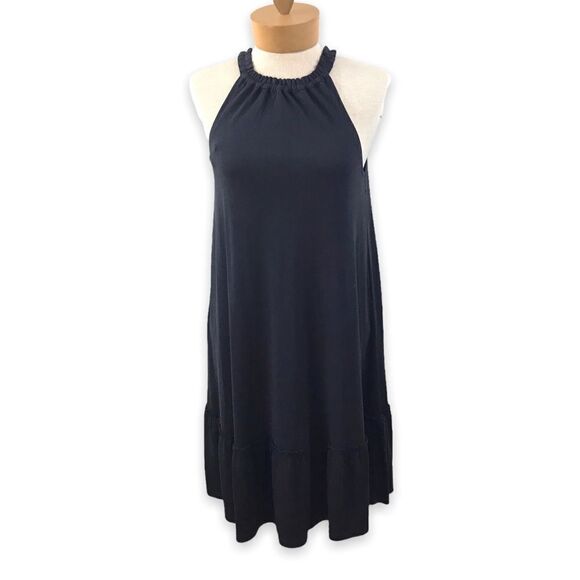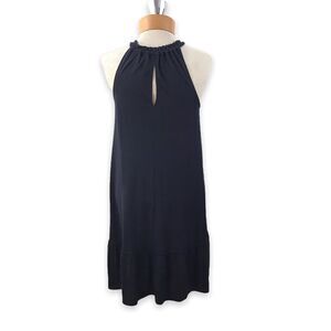 Loft sand-washed halter dress size ST. Gathered at neck. Keyhole button closure on back. Ruffle hem. Shift style. Excellent preowned condition. See pics for care tags and approximate measurements.