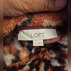 Loft Sherpa Floral Snap Collar Pullover Sweater Size Medium