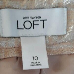 243877 Wool blend cream and gold metallic jacquard brocade back zipper entry mini skirt by Ann Taylor Loft.