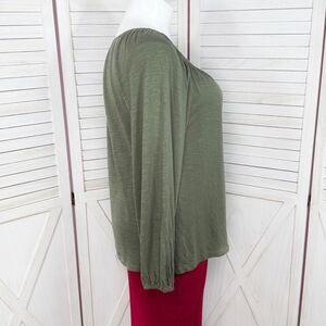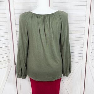 Loft Slub Jersey Knit Scoop Neck Peasant Tee Shirt Olive Green Large