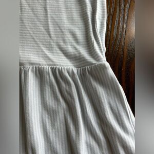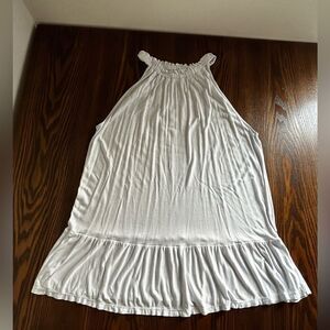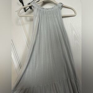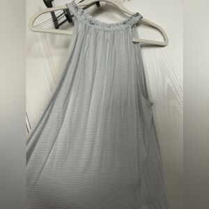 Loft Women’s Tank Top Size L Light Blue White Striped EUC Rayon Ruffle Halter.