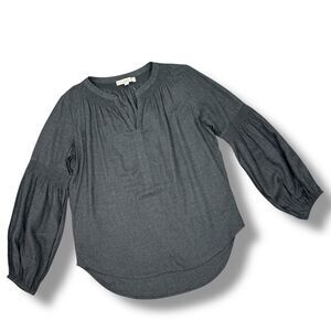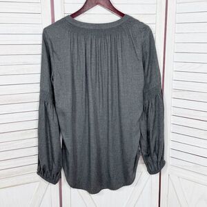 Loft V Neck Pop Over Boho Peasant Blouse Long Sleeve Denim Gray Small