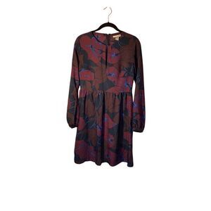 Loft women’s baby doll style floral, long sleeve, dress, maroon and black pit to pit 18 inches length 32 inches