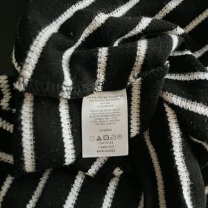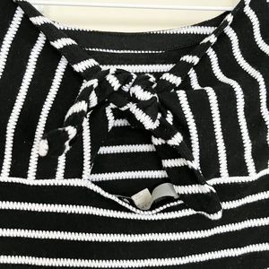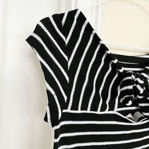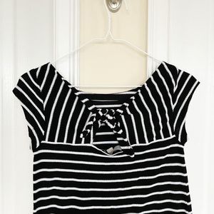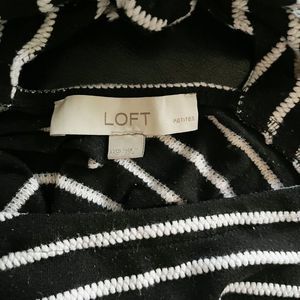 Loft Women's Black Crew Textured Stripes Cap Short Sleeves Top Size XXSP