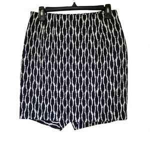 Loft Women's Black & White Cotton/Poly Geometric Print Asymmetrical Wrap Pencil Straight Skirt NEW NWT sz SP Small Petite
