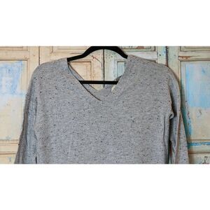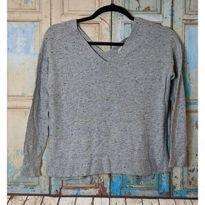 Loft Women's Small Gray Speckled V Neck Tie Back Cropped Pullover Sweater