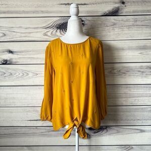 Loft Yellow Floral Embroidered Tie Front Blouse