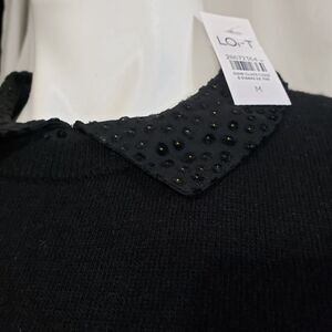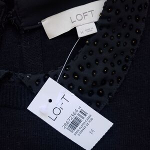 Loft black woolblend sweater velvet color with gold speckles single back button and keyhole nwt 38" bust 26" long
