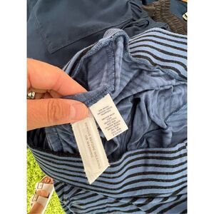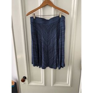 loft skirt, size large one is blue and black striped have another that is black and cream pattern. Both had a little pilling but lots of life still, super comfy, Both skirts are rayon and spandex, waist is 17 inches, llength is approximately 22 inches.