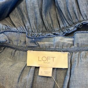 Loft chambray sleeveless ruffle blouse Size L New